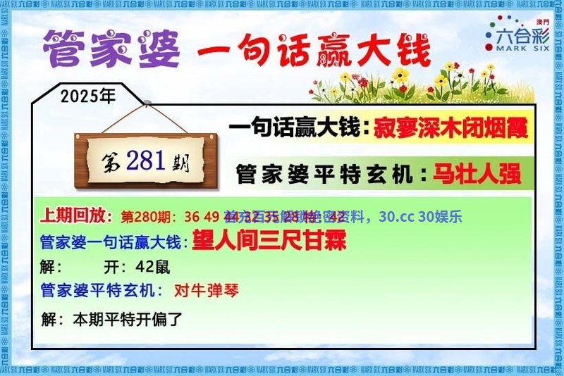 281期:单╠蛇猪鸡羊╣双╠鼠猴虎马╣开:羊47准 |